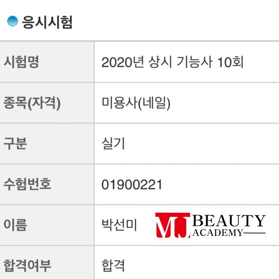 미용사(네일) 실기 박선미 합격 축하드립니다
