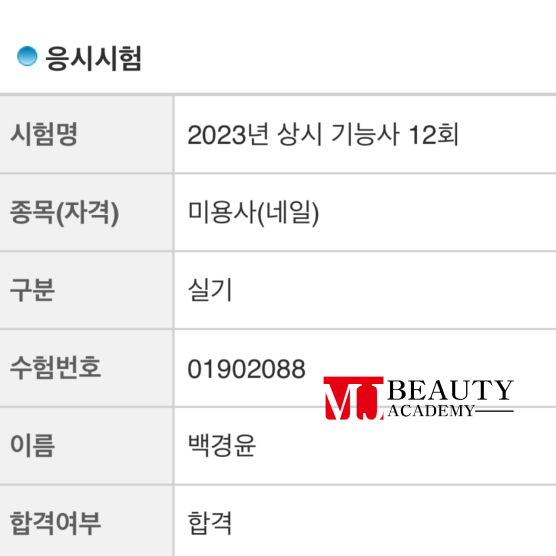 미용사(네일) 실기 백경윤 최종합격을 축하합니다