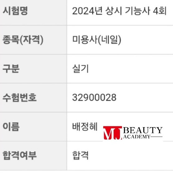 미용사(네일) 실기 배정혜 최종합격을 축하드립니다