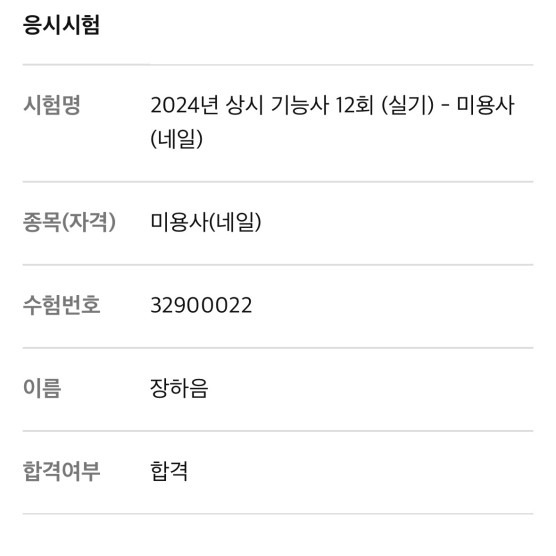 미용사(네일) 실기 장하음 최종합격을 축하드립니다