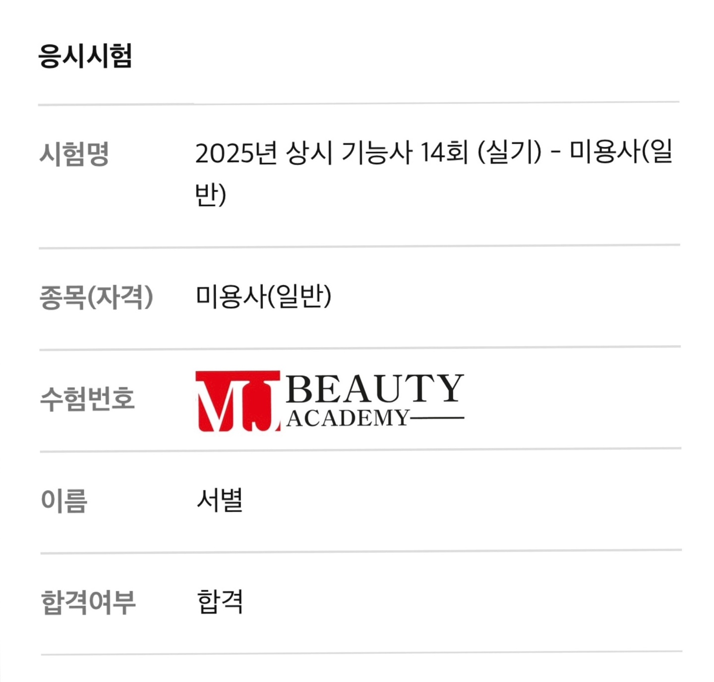 | 미용사(헤어) 실기 박원응 최종합격을 축하드립니다 (0) | 2025.08.22 |