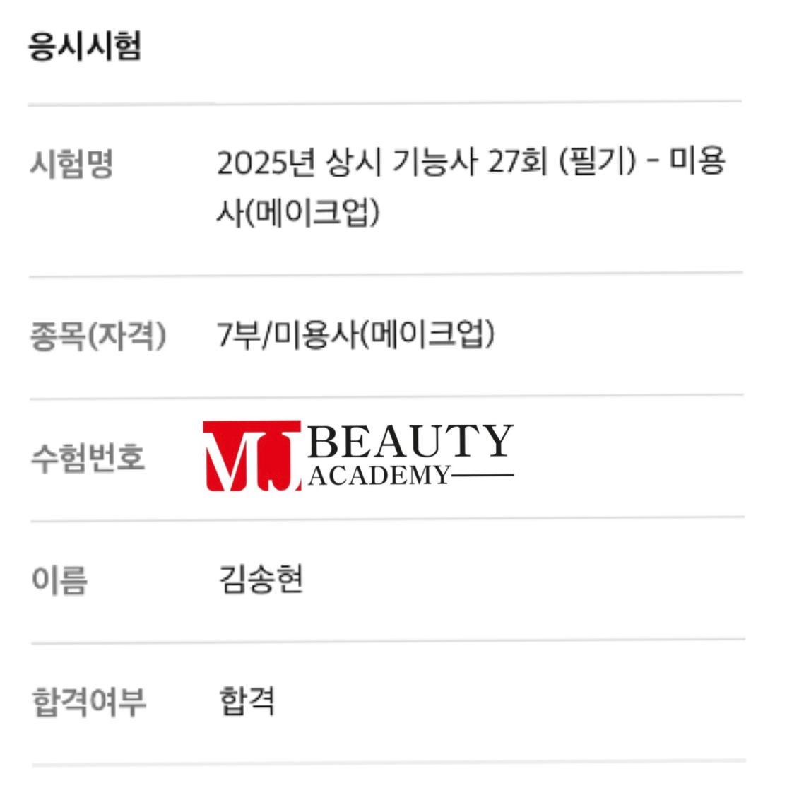 | 미용사(피부) 필기 양세아 합격을 축하드립니다 (0) | 2025.09.03 |