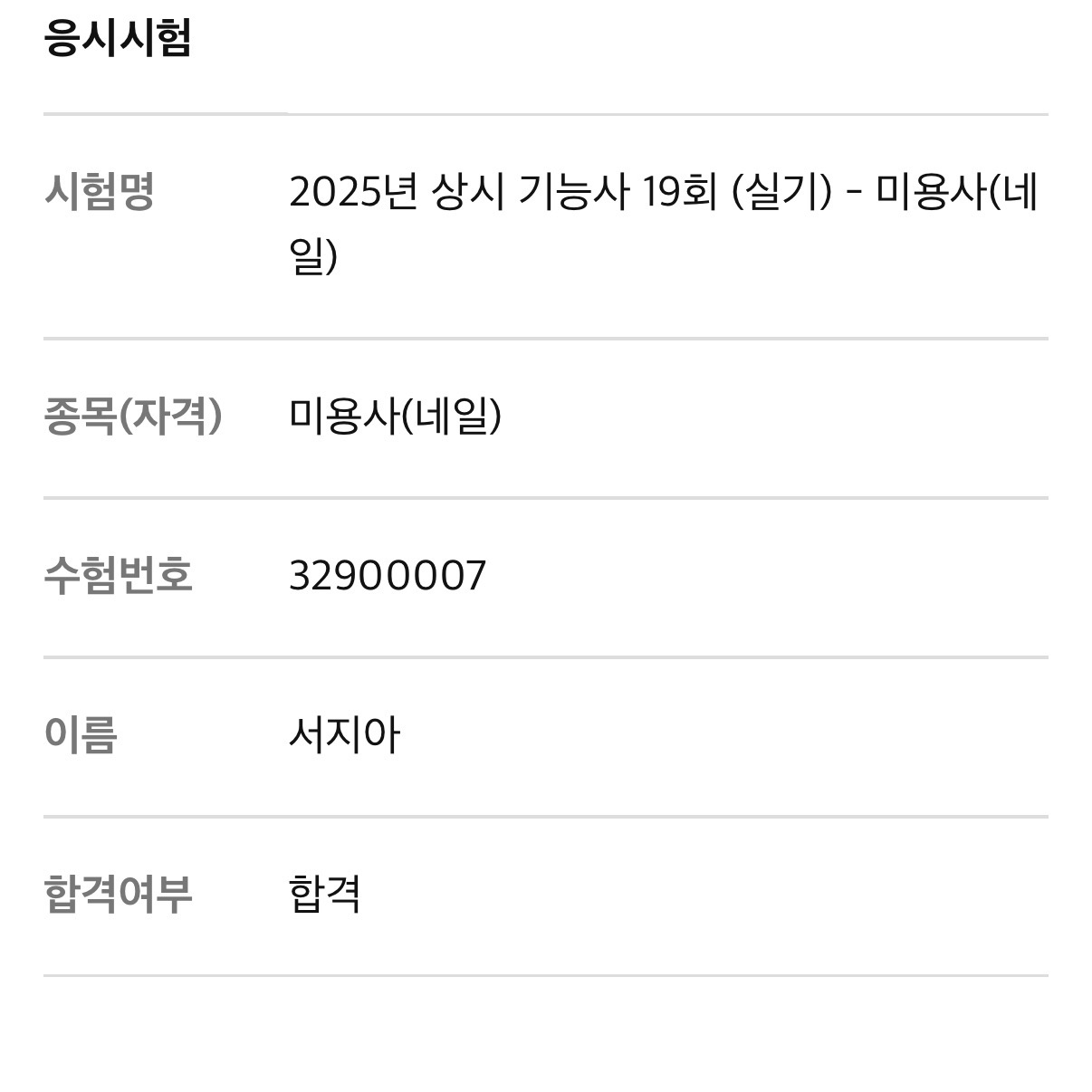 미용사(네일) 실기 서지아 최종합격을 축하드립니다