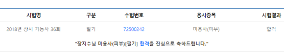 | 미용사(피부) 필기 윤수빈 합격 축하드립니다 (0) | 2025.01.06 |
