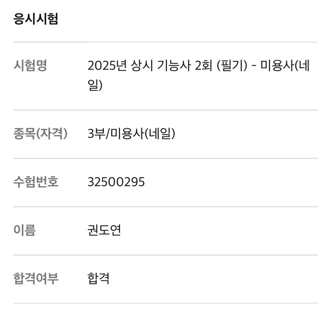 미용사(네일) 필기 권도연 합격을 축하드립니다