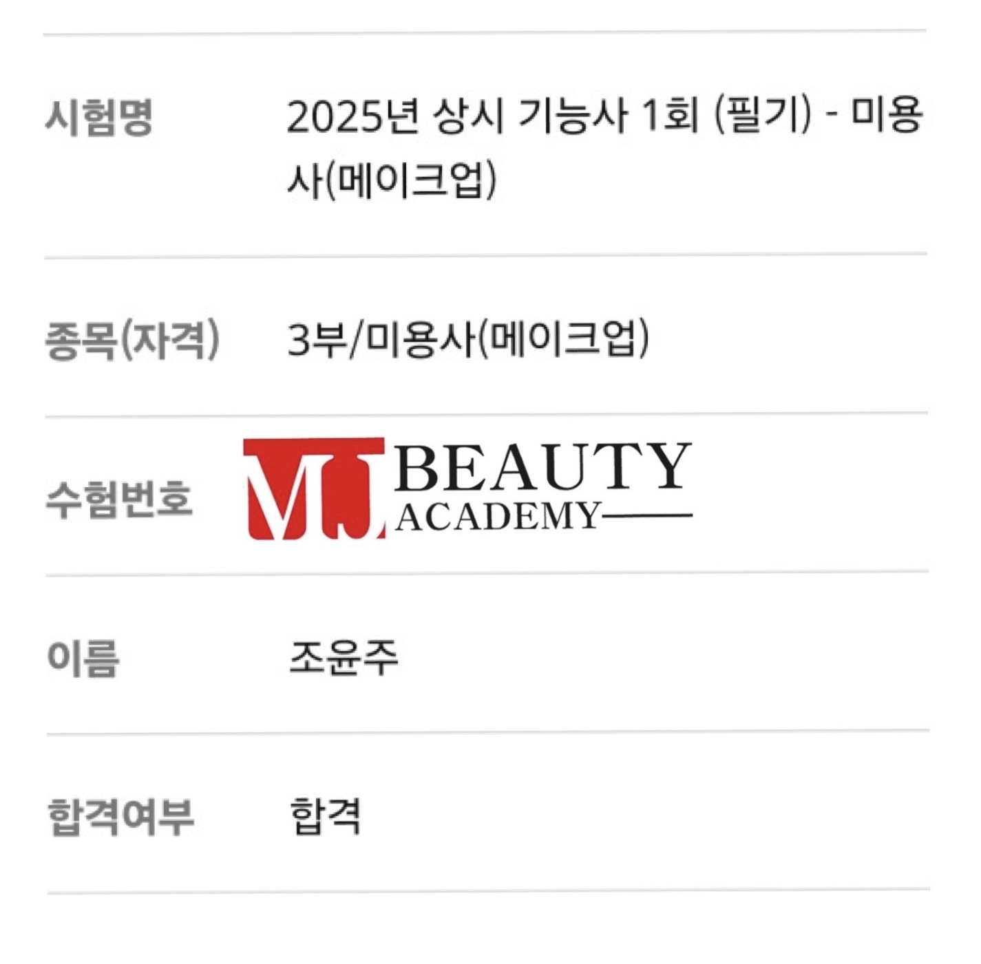 미용사(메이크업) 필기 조윤주 합격을 축하합니다