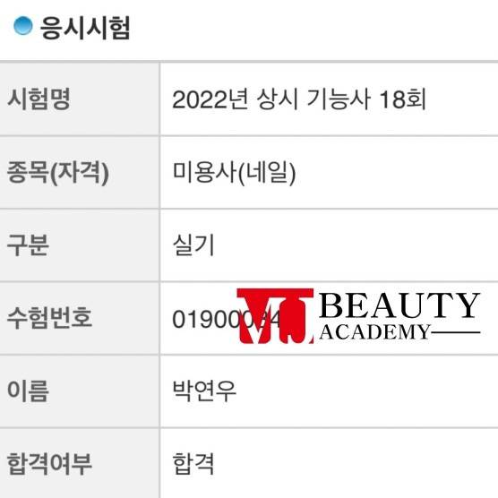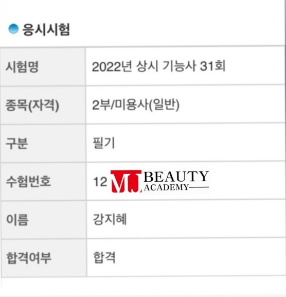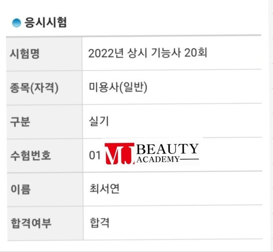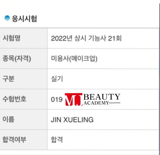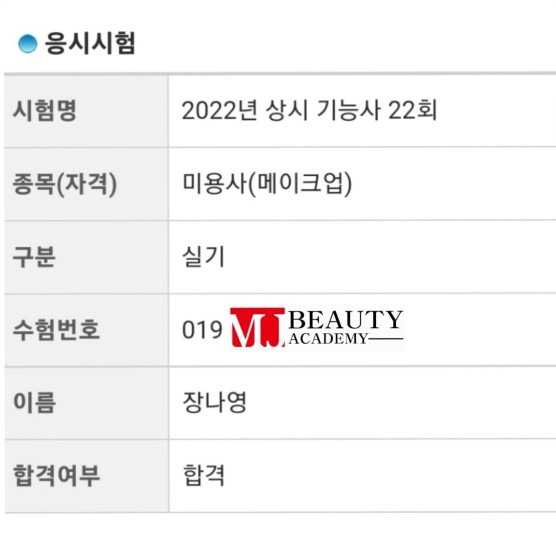 미용사(메이크업) 실기 장나영 최종합격을 축하드립니다 촉박한 시간에도 포기 하지 않고 끝까지 시험에 응한 결과로 원패스 합격을 축하드립니다. 준비하는 모든 일들도 잘 풀려나가길 바래요~ 합격 취업 후기 2025.01.14