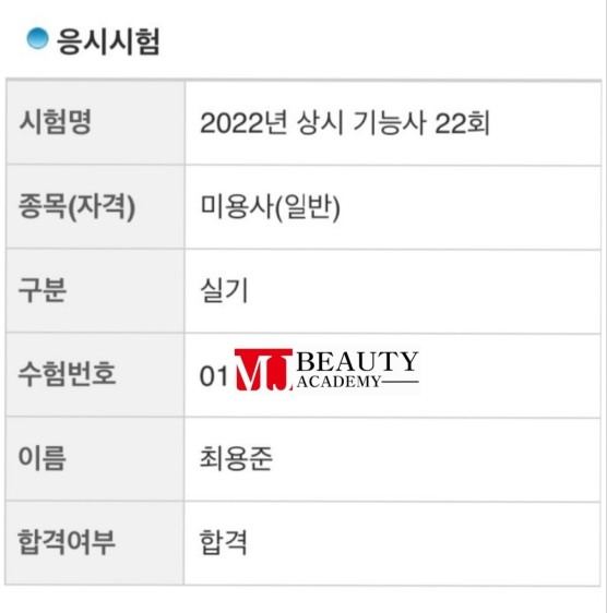 미용사(헤어) 최서연 실기 최종합격을 축하드립니다 중학교 마지막을 합격이라는 기쁜 소식으로 마무리 할 수 있게 되서 너무 축하합니다.고등학교 가서도 좋은 일들만 가득하세요. 합격 취업 후기 2025.01.14