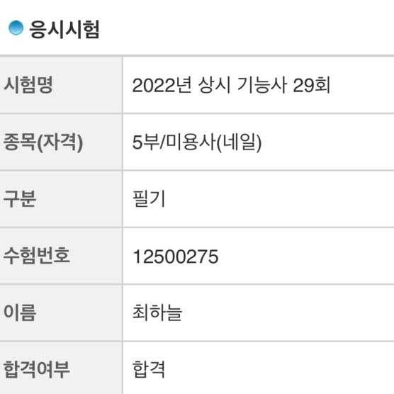 미용사(메이크업) 김설령 최종합격을 축하드립니다 힘들게 준비한만큼 한번에 붙어서 의미가 있네요정말정말 축하드리고앞으로 남은 시험도 지금처럼 열심히 해서 합격해봅시다화이팅!! 합격 취업 후기 2025.01.14