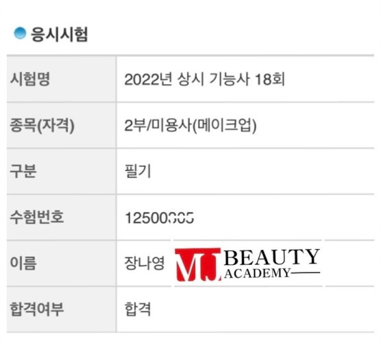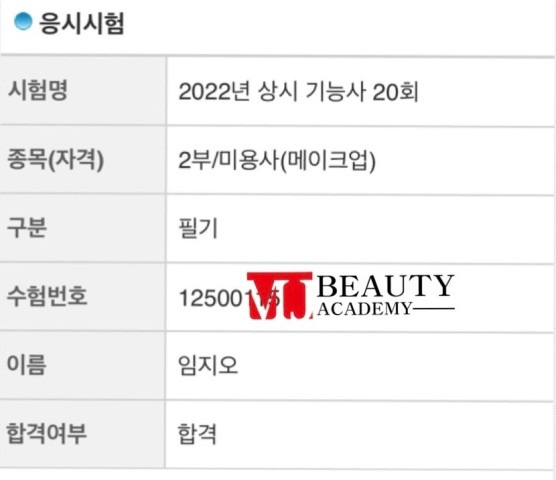 미용사(메이크업) 실기 임지오 합격을 축하드립니다 원패스 원킬 축하드립니다^^한달 바짝 준비해서 쾌속 합격을 축하하며영국유학도 잘 다녀오세요~ 발전한 모습을 기대하며 화이팅 합격 취업 후기 2025.01.13