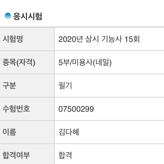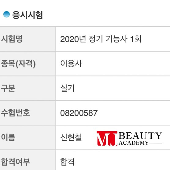 이용사 실기 신현철 합격 축하드립니다 2020년도 1회차 정기기능사 이용사 합격!!! 정기기능사는 일년에 4번 밖에 없는 시험이라 빠르게 합격하셔야되죠! 바로 합격 하셔서 다행입니다! 이제 또 새로운 직업으로 새롭게 출발해봐요 :) 축하드립니다~! 합격 취업 후기 2025.01.11
