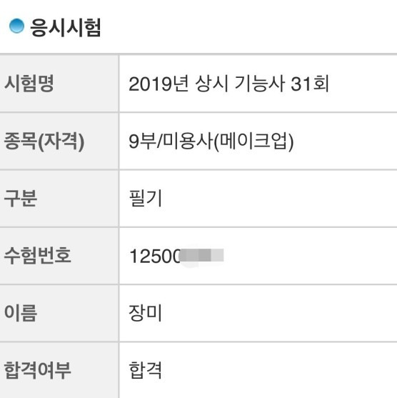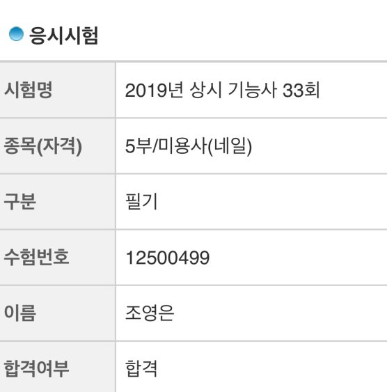 미용사(일반) 실기 박주경 합격 축하드립니다 주경군~! 이제 합격이네요. 방학때 빠르게 준비하느냐 시간은 좀 걸렸지만 그래도 포기하지 않고 합격까지 성공! 축하드립니다~^^ 합격 취업 후기 2025.01.09