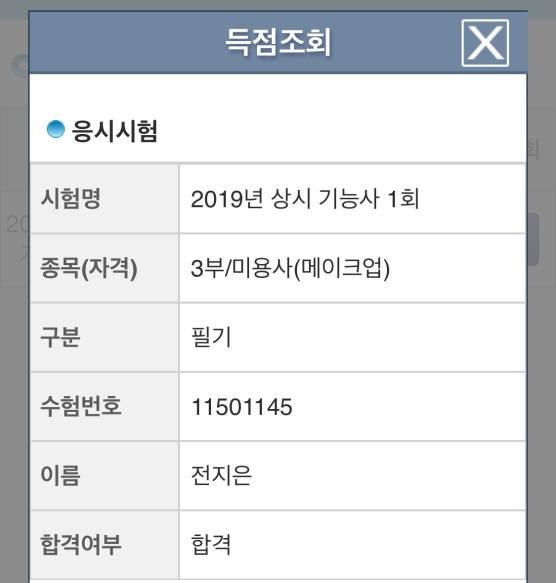 미용사(메이크업) 실기 정혜진 합격 축하드립니다 2019년도 1회차부터 바로 실기 합격 성공~! 연습하느냐 고생많았어요! 그리고 합격 정말 축하합니다~^^ 합격 취업 후기 2025.01.07
